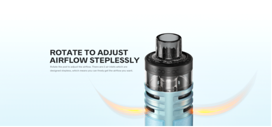 La rotation à 360° du pod permet un réglage progressif du flux d'air, ce qui permet de choisir le flux d'air désiré sans aucune autre étape. Les deux entrées d'air sont conçues sans palier, ce qui signifie que les utilisateurs peuvent libérer le flux d'air qu'ils souhaitent. Cette conception permet aux utilisateurs de passer librement de MTL à DTL et de vivre une expérience unique.