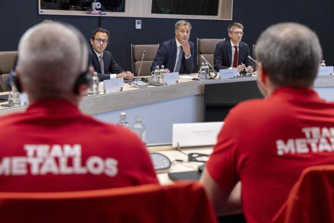 Le Premier ministre belge Alexander De Croo (à gauche),le vice-Premier ministre Pierre-Yves Dermagne (au centre) et ministre belge de l’Economie et du Travail Pierre-Yves Dermagne assistent à une réunion avec le gouvernement fédéral et les syndicats de l’usine automobile Audi Brussels,à Bruxelles,le 16 juillet 2024. NICOLAS MAETERLINCK / AFP Ambiance très tendue,contrôles par des gardes privés,huées,invectives et pétards : l’assemblée générale du personnel d’Audi Brussels,une usine dont la direction avait annoncé,début juillet,la « restructuration »,a été très chahutée,vendredi 23 août,dans la capitale belge. Prudence ou manœuvre ? C’est à Forest National,une grande salle de spectacle,que la direction du constructeur automobile allemand,membre du groupe Volkswagen (VW),avait convoqué les travailleurs de l’usine située pourtant à proximité,mais dont les grilles étaient restées fermées. « Ils ont senti que la colère montait et ils ont eu peur de notre réaction et d’une occupation »,assurait un délégué du syndicat socialiste Fédération générale du travail de Belgique (FGTB) à l’entrée de la salle.