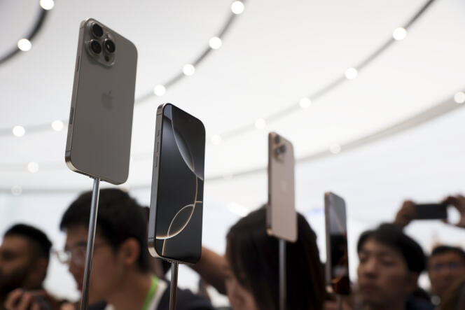 Le nouvel iPhone 16,présenté lors de la conférence annuelle de lancement des nouveaux produits Apple,au siège de l’entreprise,à Cupertino (Etats-Unis),le 9 septembre 2024. JULIANA YAMADA / AP Lundi 9 septembre,Apple tenait sa conférence annuelle de lancement de ses produits phares. Le rendez-vous coïncidait avec les dix ans de la première Apple Watch,devenue le leader du marché des montres connectées. Un pari aussi étonnant que réussi. Une décennie plus tard,la marque à la pomme réussira-t-elle à nouveau à devenir le numéro un d’une nouvelle catégorie de produits : les smartphones dopés à l’intelligence artificielle (IA) ? C’est du moins l’objectif qu’elle vise avec son iPhone 16.