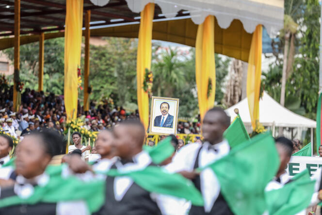 Le président camerounais Paul Biya (à gauche) et son épouse Chantal Biya (à droite) lors du défilé du 20 mai marquant la 51e célébration de la Journée de l’unité à Yaoundé,le 20 mai 2023. AFP