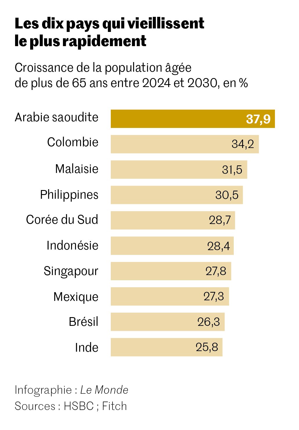 Bienvenue dans notre avenir à tous. Le Japon est le pays le plus vieux au monde,presque 30 % de sa population a plus de 65 ans. L’Italie – deuxième sur le podium – va atteindre le même niveau au milieu des années 2030,l’Allemagne la décennie suivante,et l’ensemble des pays développés y seront au cours de la décennie 2060,selon les projections des Nations unies.