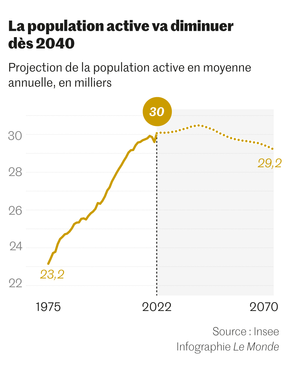 Dans un monde qui grisonne,la France ne fait pas exception. Au 1er janvier 2024,plus d’un habitant sur cinq (21,5 %),soit 14,7 millions de personnes,avait plus de 65 ans. Une proportion qui augmente depuis plus de trente ans,indique l’Institut national de la statistique et des études économiques (Insee),dans le bilan démographique publié le 16 janvier. Ce vieillissement s’accélère depuis le milieu des années 2010,les générations particulièrement nombreuses du baby-boom passant le cap de la soixantaine. A l’horizon 2070,les plus de 65 ans représenteront 29 % de la population,contre moins de 13 % en 1970.
