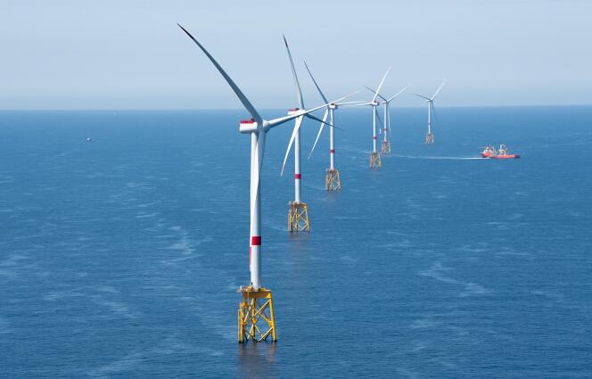 Le parc éolien de Saint-Brieuc,le 18 juillet 2023,au large d’Erquy (Côtes-d’Armor). DAVID ADEMAS / OUEST-FRANCE /MAXPPP Jusqu’à présent,c’est une goutte d’eau,pour ainsi dire. Après une décennie d’attente,la France ne compte que trois parcs éoliens en mer déjà opérationnels. Mais la filière industrielle de cette énergie renouvelable espère bien en construire « une cinquantaine » d’ici à la moitié du siècle,selon l’objectif présidentiel d’Emmanuel Macron,en 2022.