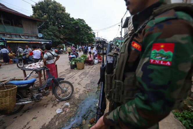 Un membre de la TNLA,la guérilla du groupe éthnique Ta’ang,surveille un marché,à Kyaukme,dans l’État Shan,au nord-est de la Birmanie,le 3 juillet 2024. STR / AFP Pour les généraux birmans,les revers ne sont pas seulement militaires. Trois ans et demi après le coup d’Etat de février 2021,l’aggravation des combats en Birmanie ces derniers mois entre la résistance armée et la junte au pouvoir place cette dernière dans une situation économique de plus en plus intenable.