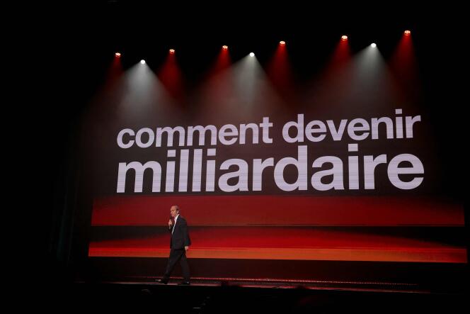 L’homme d’affaires Xavier Niel,sur la scène de l’Olympia,à Paris,mercredi 18 septembre 2024. THOMAS SAMSON / AFP « Bonsoir l’Olympia ! Vous allez bien ? Vous êtes chauds ? » Ces phrases,les murs de la salle de spectacle du boulevard des Capucines,les avaient entendues des milliers de fois,mais jamais de la bouche d’un patron. Mercredi 18 septembre,le propriétaire de Free,Xavier Niel (actionnaire à titre individuel du Groupe Le Monde),a fait son show sur cette scène mythique,à sa manière,en rock star de l’entrepreneuriat,lui qui est devenu cette année,selon le magazine Challenges,la neuvième fortune de France,avec plus de 22 milliards d’euros.