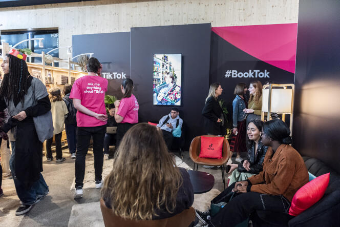 Espace #BookTok au Festival du livre de Paris 2023,au Grand Palais éphémère,le 21 avril 2023. MAGALI COHEN / HANS LUCAS Des larmes abondantes,un visage rouge et gonflé,des cris et un livre jeté à travers la pièce. Cette réaction épidermique de l’influenceuse américaine Ayman Chaudhary,alias @aymansbooks,a été provoquée par la fin de sa lecture du roman d’amour Le Chant d’Achille (Pocket,2015),de Madeline Miller. La scène de sept secondes a été publiée en 2021 sur l’application TikTok,et visionnée par 500 000 personnes à travers le monde. Un succès viral.