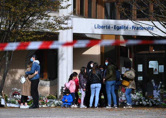 Devant le collège du Bois-d’Aulne,hommage à Samuel Paty,assassiné le 16 octobre,à Conflans-Sainte-Honorine (Yvelines),le 19 octobre 2020. ANNE-CHRISTINE POUJOULAT / AFP Quand elle s’est avancée vers la barre des témoins avec son air déterminé,sa jupe droite noire et sa veste grise à coudières,mardi 12 novembre,on a tout de suite compris que la déposition d’Audrey F.,la principale du collège de Conflans-Sainte-Honorine (Yvelines),où exerçait Samuel Paty,serait sobre et méthodique. Et que son témoignage devant la cour d’assises spéciale de Paris allait se révéler extrêmement précieux pour comprendre l’engrenage infernal qui a conduit à l’assassinat du professeur d’histoire-géographie,le 16 octobre 2020.