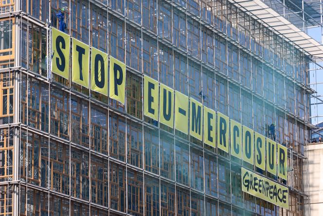 Lors d’une manifestation contre l’accord UE-Mercosur,des militants de Greenpeace accrochent une banderole sur le bâtiment du Conseil où se tient une réunion des ministres du commerce de l’Union européenne,à Bruxelles,le 25 mai 2023. KENZO TRIBOUILLARD / AFP Le premier ministre,Michel Barnier,s’y dit très attaché. Son prédécesseur,Gabriel Attal,voulait en mettre « partout ». A l’Assemblée nationale,le sujet est plutôt consensuel,et une proposition de résolution sur le « respect de normes de production équivalentes » a été adoptée le 5 novembre à la quasi-unanimité (moins les abstentions) par la commission des affaires européennes. La nécessité de mesures et clauses miroirs dans les échanges commerciaux – soit des accords de réciprocité pour exiger des importations le suivi de mêmes règles environnementales et sanitaires – est prêchéepar l’ensemble de la classe politique ou presque,et pourtant,dans les faits,reste difficile à appliquer. De quoi faire craindre que ce principe serve d’alibi à la signature d’accords de libre-échange en réalité peu regardants sur le respect des normes.