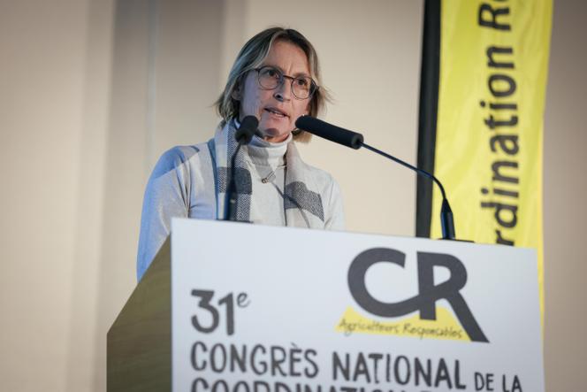 Véronique Le Floc’h,présidente de la Coordination rurale,pendant le congrès national du syndicat au Palais des congrès du Futuroscope,à Chasseneuil-du-Poitou (Vienne),le 19 novembre 2024. MATHIEU HERDUIN / PHOTOPQR/LA NOUVELLE REPUBLIQUE/MAXPPP « On gagnera les élections contre la cogestion »,« pour des prix,pas des primes » : les paroles de la chanson reviennent en boucle,accompagnées des images des manifestations de début d’année. Le clip de campagne de la Coordination rurale (CR) a été très largement diffusé à l’occasion du congrès annuel de ce syndicat agricole,organisé cette année au Palais des congrès du Futuroscope,mardi 19 et mercredi 20 novembre.