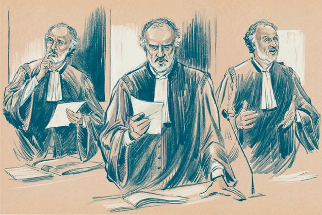 Mᵉ Rodolphe Bosselut,au tribunal de Paris. BEN LAMARE POUR « LE MONDE » Le tribunal a fait salle comble,mercredi 27 novembre,pour le 26e et dernier jour du procès des assistants Front national (FN) au Parlement européen : la salle était pour moitié composée de journalistes,pour l’autre de proches du Rassemblement national (RN),venus rire aux quelques bons mots de l’avocat de Marine Le Pen.