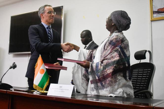 Nicolas Maes (à gauche),PDG d’Orano,et l’ex-ministre nigérienne des mines Ousseini Hadizatou Yacouba (à droite),à Niamey,le 4 mai 2023. BOUREIMA HAMA / AFP Un an et quatre mois après la prise du pouvoir de la junte au Niger,la présence d’Orano (ex-Areva) dans le pays se complique encore. Dans un communiqué publié le mercredi 4 décembre,la compagnie,détenue majoritairement par l’Etat français,« constate la perte du contrôle opérationnel » de la Société des mines de l’Aïr (Somaïr),une coentreprise dont elle est pourtant encore l’actionnaire principal (à 63,4 %) et dont l’Etat nigérien détient le restant.