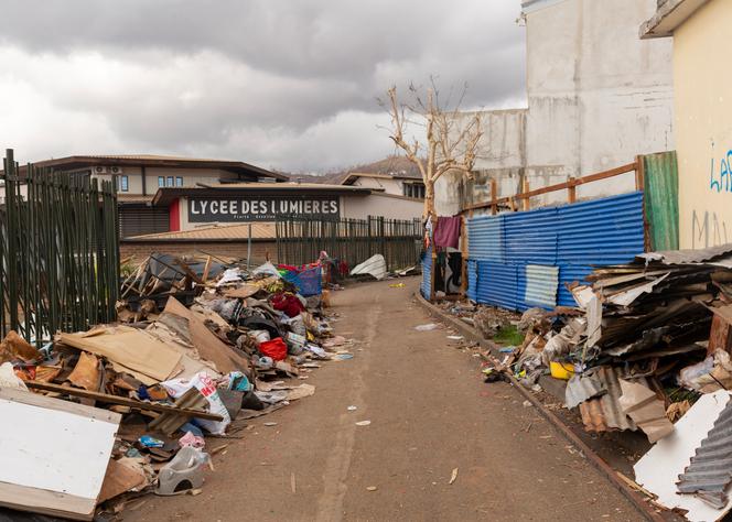 Au lycée des Lumières,à Mamoudzou,le 19 décembre 2024,après le passage du cyclone Chido. MORGAN FACHE/DIVERGENCE POUR « LE MONDE » « Quand je rentre chez moi,mon esprit part à Mayotte. Dès que je suis seule,l’anxiété survient. » Comme la plupart des 5 500 jeunes Mahorais qui poursuivent leur cursus dans l’Hexagone,Naslat Maroine,étudiante de 23 ans en journalisme et communication dans une école parisienne,est intimement ébranlée par le cyclone Chido,qui a ravagé son île le 14 décembre.