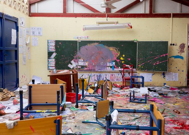 Dans une salle de classe de l’école élémentaire de Kawéni T17,à Mamoudzou,à Mayotte,le 26 décembre 2024. MORGAN FACHE/DIVERGENCE POUR « LE MONDE » La tempête Dikeledi qui a soufflé sur Mayotte du samedi 11 au lundi 13 janvier est venue compliquer une rentrée scolaire qui s’annonçait déjà difficile,un mois après le passage du cyclone Chido,le 14 décembre 2024. Des écoles sont redevenues temporairement des centres d’hébergement d’urgence,d’autres établissements ont été inondés. « Il faut recommencer le nettoyage des établissements et reprendre les quelques travaux entrepris que les fortes pluies et le vent ont à nouveau dégradés »,explique Vital Kuola,enseignant de technologie dans l’archipel et secrétaire académique du syndicat SE-UNSA.
