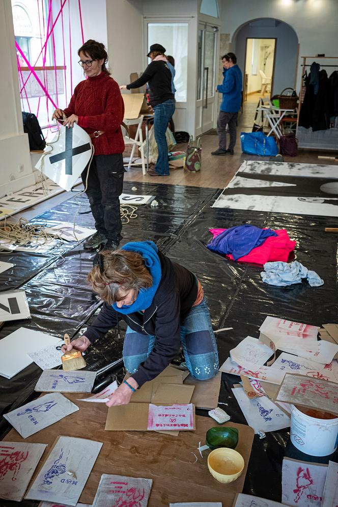 Le 7 janvier,à Ganges,les membres du MAD (Maternité à défendre) préparent la manifestation « Bon anniversaire Simone »,en hommage à Simone Veil,prévue le 18 janvier. VIVIANE DALLES POUR M LE MAGAZINE DU MONDE A quelques jours du 50e anniversaire de la loi Veil,qui a légalisé l’interruption volontaire de grossesse en France,un groupe de femmes s’active dans un local associatif à Ganges (Hérault). En tenue de bricolage,elles préparent des affiches colorées,des photos XXL de femmes enceintes et des pochoirs pour une manifestation festive intitulée « Bon anniversaire Simone »,fixée au 18 janvier.