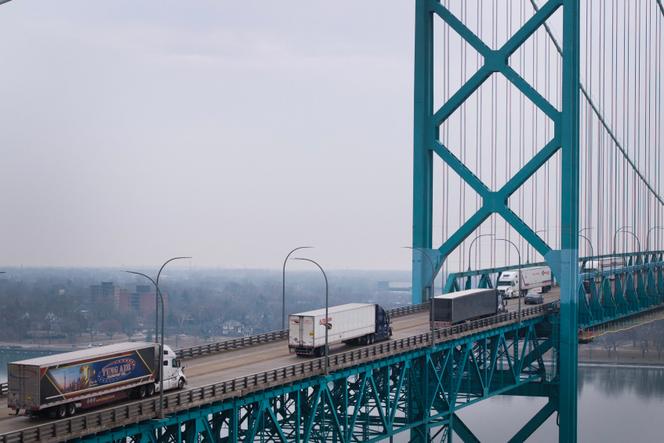 Les camions transportent des marchandises entre le Canada et les Etats-Unis,sur le pont Ambassador,qui relie Détroit (Michigan) et Windsor (Ontario) le 3 février 2025 à Detroit,Michigan. SCOTT OLSON / AFP Après la Colombie,le Mexique et le Canada : les tarifs douaniers de 25 % décidés pendant le week-end contre le Mexique et le Canada,qui devaient entrer en vigueur mardi 4 février,n’ont même pas été mis en œuvre. Ils ont été suspendus lundi 3 février pour au moins un mois. Cette folle journée avait commencé par un début de krach à Wall Street,les marchés paniquant soudain,alors qu’ils n’avaient jamais pris au sérieux les menaces de Donald Trump. Puis est arrivé un premier accord avec le Mexique dans la foulée d’un entretien entre M. Trump et son homologue mexicaine,Claudia Sheinbaum.