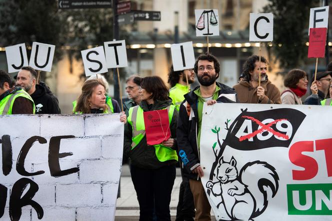 Manifestation contre l’autoroute 69 (A69),à Toulouse,le 18 février 2025. MATTHIEU RONDEL / AFP Les yeux tirés par le manque de sommeil,Thomas Brail est descendu de sa tente suspendue aux branches d’un platane,dans laquelle il campait depuis deux jours,pour assister à l’audience du tribunal administratif de Toulouse. Mardi 18 février,la juridiction s’est penchée sur la légalité de l’A69,cette autoroute de 53 kilomètres qui doit relier,à la fin de l’année,Castres (Tarn) à Toulouse (Haute-Garonne). « Nous,grimpeurs,avons voulu par cet acte symbolique mettre un coup de projecteur sur cette étape finale »,a expliqué le fondateur du Groupe national de surveillance des arbres,conforté par les conclusions de la rapporteure publique,Mona Rousseau.