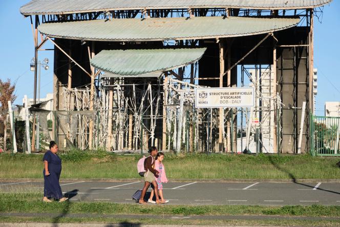 Une structure scolaire d’escalade incendiée lors des émeutes,dans le quartier de Magenta,à Nouméa,en Nouvelle-Calédonie,le 17 juin 2024. THEO ROUBY / AFP Dans le quartier populaire de Rivière-Salée,l’un des plus étendus de Nouméa,les traces des violentes émeutes qui ont éclaté en mai 2024 dans l’archipel pèsent sur la rentrée scolaire,qui a eu lieu le 17 février. La province Sud,en charge du premier degré,a annoncé la suppression de plusieurs aides,désormais réservées à ceux qui peuvent justifier de dix ans de résidence dans la collectivité. Certains parents n’ont tout simplement pas réussi à inscrire leurs enfants car la province n’accepte plus les attestations d’hébergement comme justificatif de domicile. Un casse-tête pour de nombreuses familles de la communauté kanak,où il n’est pas rare de vivre chez les grands-parents,un oncle ou une tante,surtout en période de crise économique.