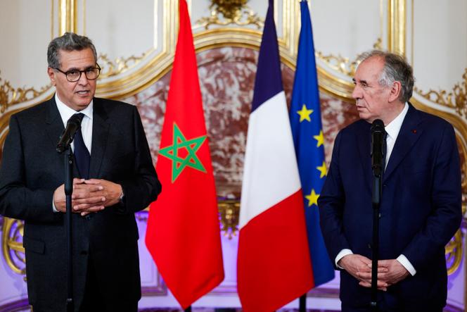 Le chef du gouvernement marocain,Aziz Akhannouch,et le premier ministre français,François Bayrou,à l’hôtel Matignon,le 22 février 2025. GEOFFROY VAN DER HASSELT/AFP Selon une source proche du dossier,la réaction marocaine a été « extrêmement rapide,de l’ordre de quelques heures ». Dimanche 23 février,sur demande française,Alan G. et Albinou D. sont interpellés à Marrakech. Les deux ressortissants français sont soupçonnés d’être les complices de Mohamed Amra,arrêté la veille à Bucarest,au terme de neuf mois de cavale. L’évasion du narcotrafiquant,lors de l’attaque du fourgon qui le transportait entre la prison d’Evreux et le tribunal de Caen,le 14 mai 2024,avait coûté la vie à deux agents pénitentiaires,faisant du fugitif l’homme le plus recherché de France.