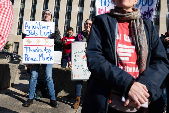Des manifestants protestent contre les coupes budgétaires du Bureau de protection financière des consommateurs (CFPB),à Washington,le 3 mars 2025. SAUL LOEB / AFP Le taux de chômage aux Etats-Unis est remonté à 4,1 %,avec 203 000 chômeurs de plus,et le pays n’a créé que 151 000 emplois en février. C’est moins bien que les 170 000 attendus mais mieux que les 125 000 de janvier. L’effet Trump commence à se faire sentir,l’Etat fédéral ayant supprimé 10 000 emplois sous la houlette d’Elon Musk (dans les Etats américains et au niveau local les emplois publics ont en revanche augmenté de 21 000).