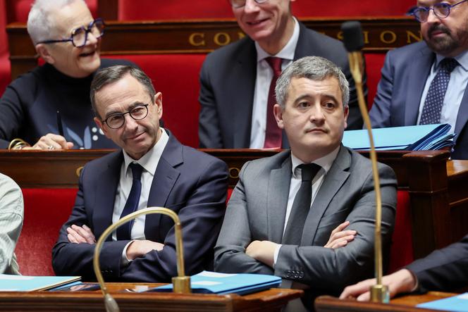 Le ministre de l’intérieur,Bruno Retailleau,et le ministre de la justice,Gérald Darmanin,à l’Assemblée nationale,à Paris,le 18 mars 2025. SARAH MEYSSONNIER / REUTERS François Bayrou a tranché : le gouvernement inscrira à l’ordre du jour de l’Assemblée nationale la proposition de loi interdisant le voile islamique dans le sport,adoptée au Sénat le 18 février. Le premier ministre s’est toutefois gardé de donner lui-même la « ligne » du gouvernement,chargeant Aurore Bergé d’annoncer à l’Hémicycle,mardi 18 mars,puis au Sénat,mercredi,le soutien de l’exécutif au texte sénatorial. « Aucun signe religieux ostentatoire ne doit être porté lors des compétitions sportives »,a martelé,dans les deux chambres,la ministre déléguée chargée de l’égalité entre les hommes et les femmes et de la lutte contre les discriminations,pour qui « un terrain de sport n’a pas à être un lieu d’entrisme religieux,d’entrisme politique ».