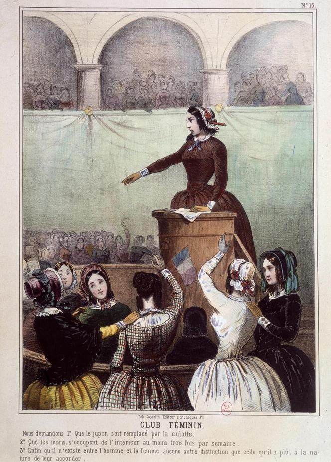 Le Club de femmes,lithographie,1848. L’intervention des femmes dans l’espace public,ailleurs et ici,élargit considérablement l’idée de démocratie dans l’ensemble des lieux de vie. La longue expérience d’exclusion du politique de la moitié de l’humanité aide les héritières à concevoir autrement la gestion de la chose publique (respublica),au niveau de chaque lieu d’activité. L’intégration de la diversité sociale dans les regroupements d’habitants rassemblés dans les espaces de vie et de travail permet à la responsabilité collective et individuelle de s’épanouir en se réinventant. Telle est la conclusion d’une rencontre,en juillet 2021,entre représentantes amérindiennes du Chiapas,au Mexique,et des « gilets jaunes » de Commercy,en France,confrontant leurs expériences respectives.