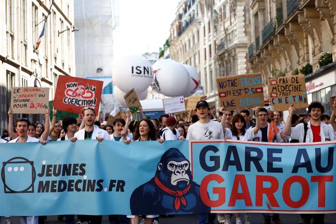 Lors d’une manifestation pour protester contre la loi Garot,à Paris,le 29 avril 2025. ABDUL SABOOR / REUTERS La mesure,inflammable,va-t-elle,pour la première fois,passer le cap d’un vote à l’Assemblée nationale ? L’idée de réguler l’installation des médecins libéraux,à l’heure où les déserts médicaux s’aggravent,a gagné des partisans dans le débat public,à commencer par les quelque 250 députés qui ont apposé leur signature au bas de la proposition de loi « visant à lutter contre les déserts médicaux »,portée par le député socialiste de la Mayenne,Guillaume Garot. L’examen du texte doit reprendre à compter de mardi 6 mai,en séance publique.
