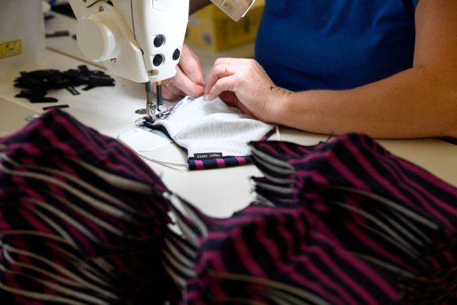 A l’usine des Tricots Saint James à Saint-James (Manche),le 22 avril 2020. DAMIEN MEYER/AFP Depuis l’usine des Tricots Saint James,dans la Manche,Luc Lesénécal a un œil à New York et un autre à Osaka. Le dirigeant se préoccupe du sort de ses ventes aux Etats-Unis et au Japon,deux pays-clés pour la PME née en 1889. Connue pour ses pulls marins en laine et ses marinières en coton,la marque fait partie des sponsors de l’Exposition universelle qui a ouvert ses portes à Osaka,pour six mois,le 13 avril. Au cours de l’évènement,qui doit attirer 28 millions de visiteurs,la marque habille le personnel du pavillon français. Et vend une édition bleu,blanc,rouge de sa marinière.