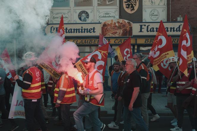 Manifestation à Dunkerque (Nord),le 1ᵉʳ mai 2025. AIMÉE THIRION POUR « LE MONDE » Sophie Binet n’est pas venue les mains vides. Invitée,mardi 13 mai,à discuter avec Emmanuel Macron sur TF1,la secrétaire générale de la CGT lui a livré la liste des « 400 plans de licenciement » en cours en France avec « des entreprises qui touchent des aides publiques et qui distribuent des dividendes »,plus une demande de nationaliser ArcelorMittal. Le matin même,la députée (La France insoumise) de Seine-Saint-Denis Aurélie Trouvé avait déposé une proposition de loi en ce sens.