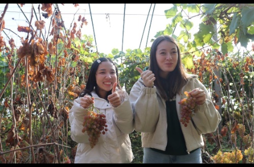 Des amis étrangers visitent le vignoble du bourg de Jiangelou, dans le comté de Huimin — Les raisins “Belle de Glace” deviennent un pont d’amitié